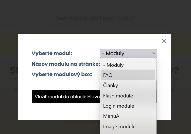 Na novú, alebo existujúcu stránku vložte nový modul FAQ