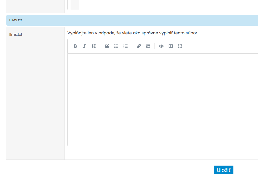 Prípadne na vytvorenie môžete využť aj generátor LLMs.txt - napr: https://wordlift.io/generate-llms-txt/