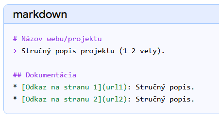 Formát Markdown: Súbor je písaný v jednoduchom formáte Markdown, ktorý je pre AI modely prirodzene čitateľný a ľahko spracovateľný.